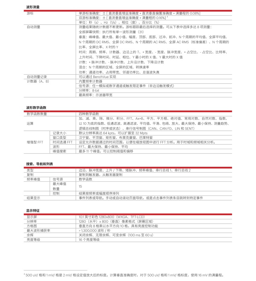 HD3 系列采用完全定制的核心器件,專門針對(duì)示波器測(cè)量進(jìn)行了優(yōu)化。研發(fā)團(tuán)隊(duì)投入大量精力設(shè)計(jì)出了 一款全新的 14-bit ADC、一款全新的 ASIC,還有其他配套元器件和一種全新的信號(hào)傳輸架構(gòu)。由于是親 自設(shè)計(jì)的這些元器件,而不是使用現(xiàn)成的元器件,因此我們的硬件運(yùn)行速度更快、效率更高,因?yàn)樗鼈兪菍iT針 對(duì)示波器設(shè)計(jì)的。 這種新架構(gòu)還包括深存儲(chǔ)器,每個(gè)通道都配有專用的存儲(chǔ)芯片(100 Mpts)。這意味著通道之間不存在交織采樣。 即使您開啟了全部 4 個(gè)通道,也仍然可以在每個(gè)通道上獲得該示波器的最大存儲(chǔ)深度和最高采樣率。 我們采用的新型定制 ASIC(MegaZoom 5)使得 HD3 成為同類產(chǎn)品中唯一一款通過硬件實(shí)現(xiàn)區(qū)域觸發(fā)、串行解 碼和模板測(cè)試等功能的示波器。 最后,借助定制硬件,我們還能夠構(gòu)建新的定制軟件,例如我們的故障獵人應(yīng)用。您只需運(yùn)行故障獵人,就能輕 松檢測(cè)信號(hào)中的各種毛刺或錯(cuò)誤!
